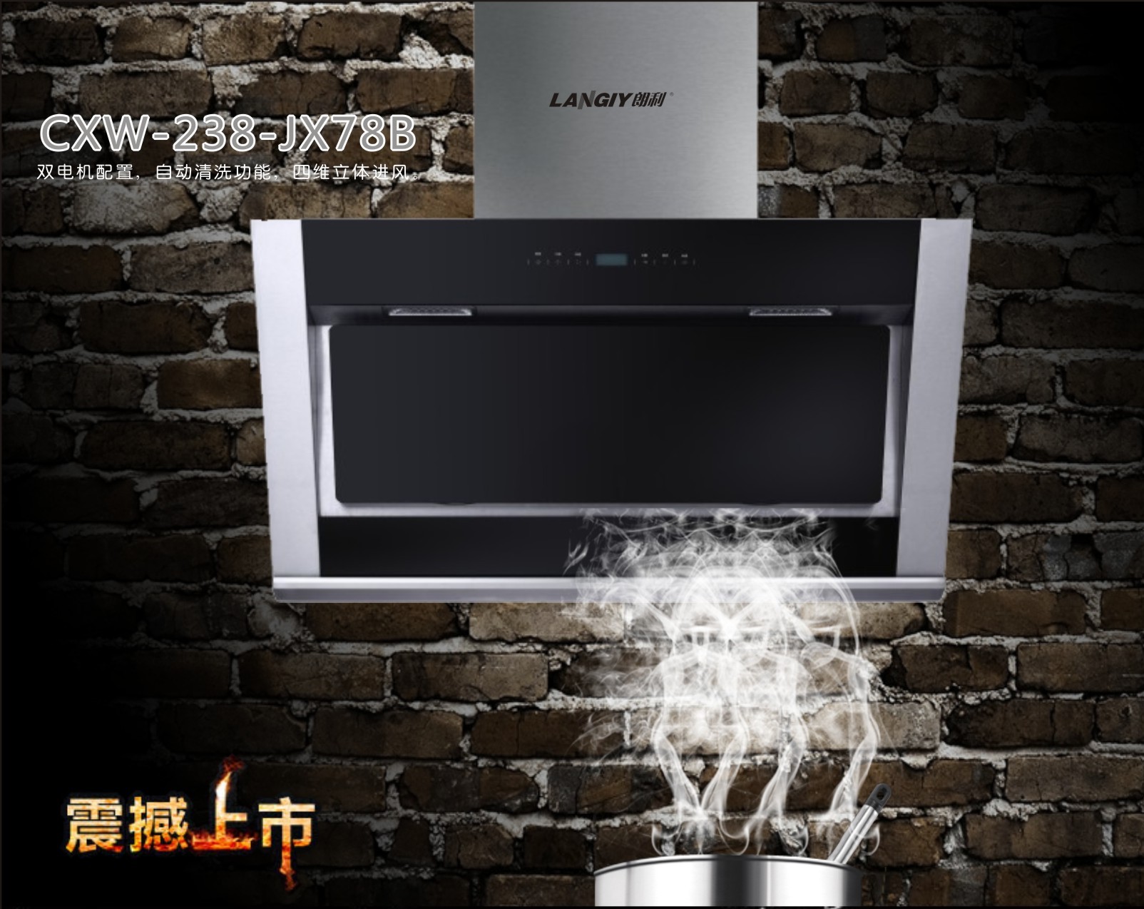 ①全不锈钢无缝一体拉伸;②高端黑晶面板双核电机全自动拢烟系统;③智能轻触开关,智慧设计,110°C高温蒸汽洗更彻底,油烟扫净清洁度达98%;④电压/频率:220V/50HZ,输入总功率:238W;⑤风量:16±1.5m³/min,出风口:Ф160mm,噪音:≤54db。