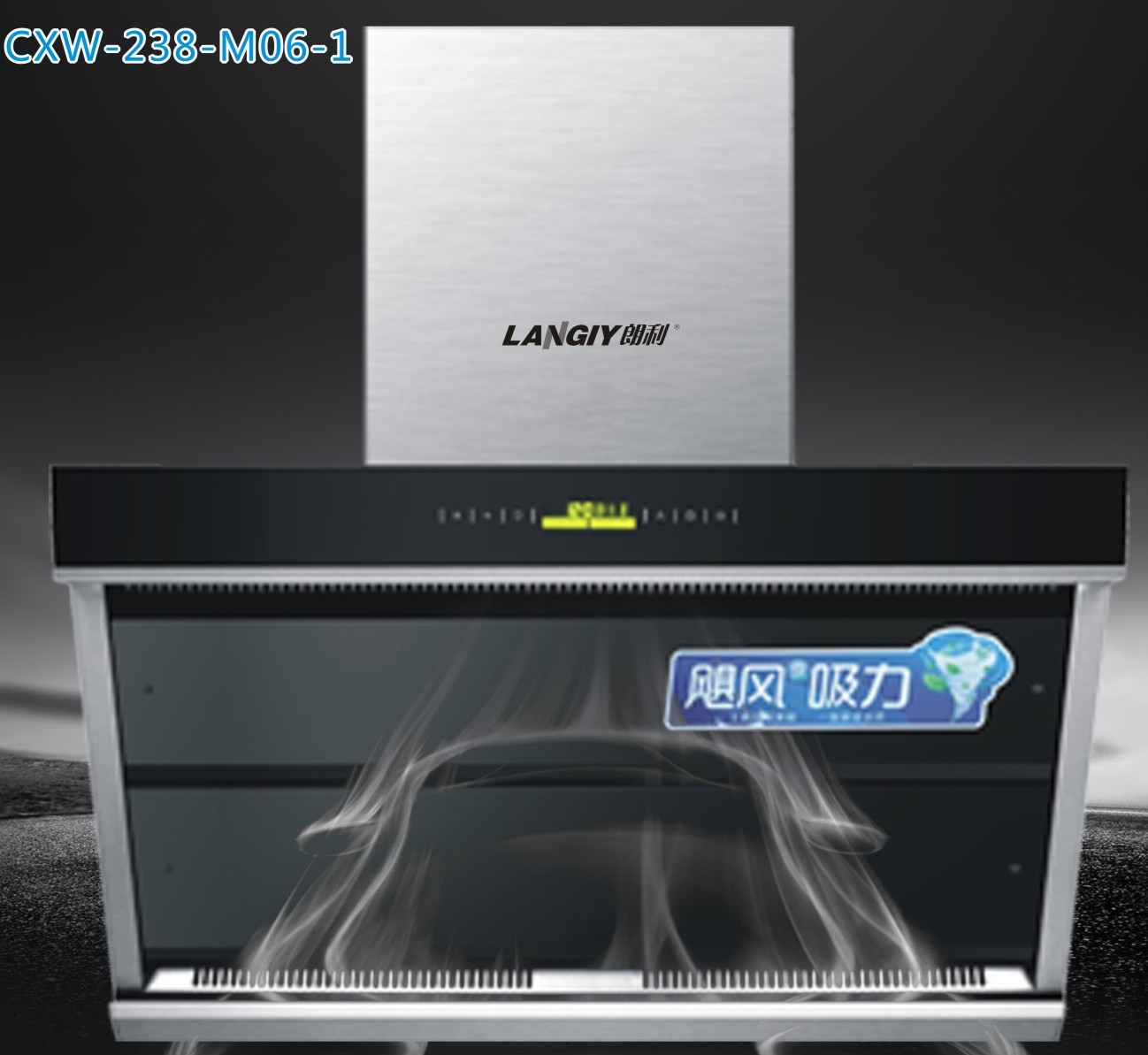 ①全不锈钢无缝一体拉伸;②侧吸式双核电机全自动拢烟系统;③智能轻触开关,高端黑晶面板;④电压/频率:220V/50HZ,输入总功率:238W;⑤风量:16±1.5m³/min,出风口:Ф160mm,噪音:≤54db。